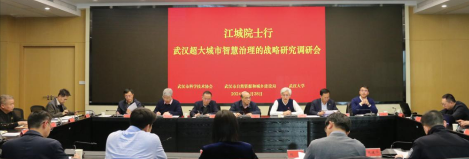 2024年,聚焦武汉超大城市智慧治理难题,中国工程科技发展战略湖北研究院武汉分院邀请郭仁忠院士领衔开展“武汉超大城市智慧治理的战略研究”,项目组由武汉大学资源与环境科学学院、深圳大学、市测绘研究院、市自然资源和规划信息中心专家组成。项目以武汉市智慧城市建设的实践为基础,拟通过梳理在典型场景面临的问题与挑战,探索形成基于地理智能的武汉市超大城市治理新范式。