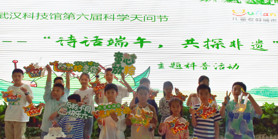 端午节当天,“诗话端午,共探非遗”主题活动吸引了现场小观众踊跃参与。活动现场,科普辅导员带领大家了解端午节的起源、风俗和饮食,并将以端午节为主题的古诗词串联起来,通过诗词品读的形式,让青少年深度体会中国传统文化的内涵。在DIY非遗龙舟灯活动环节,孩子们更是兴致勃勃,跃跃欲试。只见大家通过折叠、穿插、拼接等方式,将印有龙舟图案的纸板、细绳、灯泡巧妙组装后,一个个带有节日氛围的龙舟灯就灵动地呈现出来。