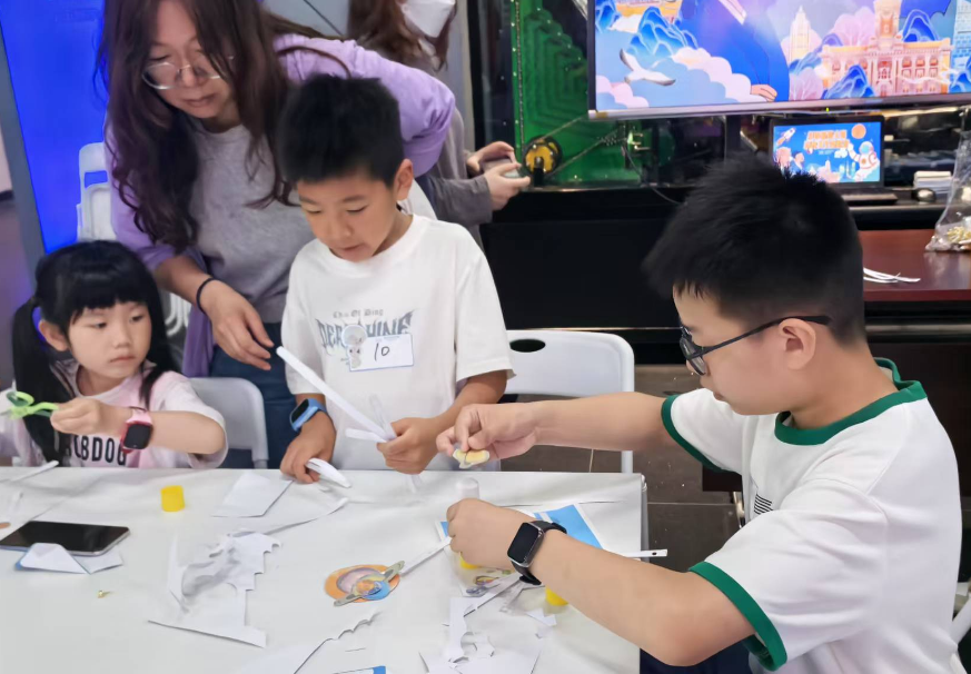 六一当天,武汉科技馆推出儿童节特别活动——“打印星辰大海 玩转天文实验室”。活动现场,小观众们在科普辅导员的引导下,将平面零件巧妙组装成手工望远镜,直观感受光学仪器的构造原理。随后,在天文手工课堂中,科普辅导员结合武汉科技馆宇宙展厅太阳系展品讲述八大行星的特征与运行规律,并指导大家将平面纸张化身为太阳系八大行星纸模。整个活动以寓教于乐的方式激发青少年对天文学的浓厚兴趣,让科学知识在指尖流转间入脑入心。
