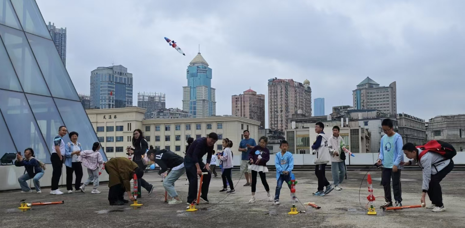 端午假期最后一天,武汉科技馆精心筹备推出“圆梦六一 一飞冲天”水火箭制作与发射活动。小朋友们亲手组装专属自己的超炫水火箭,沉浸式探索气压与反冲力的科学奥秘,共同见证火箭呼啸升空的高光瞬间,深度领略逐梦蓝天的科学魅力!此外, SCIENCE探究活动中心在假期开设了科学探究课《“叛逆”的石头》,小朋友们亲手复刻一块会“耍脾气”的石头,并像侦探一样,通过观察和实验,找到石头“叛逆”的真相。