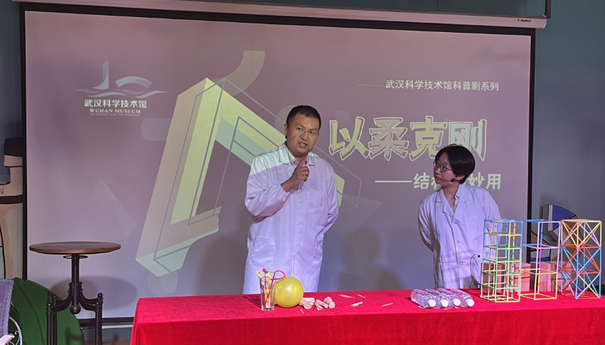 儿童节当天,在武汉科技馆内,一场大学生和小学生共度儿童节的活动正在进行。在这场“致敬星辰,传承薪火——‘两弹一星’精神”科普宣讲活动中,长江工程职业技术学院的大学生志愿者们为来馆的小观众们讲述了“两弹元勋”邓稼先隐姓埋名在沙漠戈壁里研制原子弹、氢弹以及“中国导弹之父”钱学森放弃美国优厚待遇辗转回国,投身祖国科研事业的感人事迹,并带领大家感悟“两弹一星”热爱祖国、无私奉献,自力更生、艰苦奋斗,大力协同、勇于攀登的精神内涵。同时,“两弹一星”主题动画,重现了那段波澜壮阔的奋斗岁月。最后,小观众们为航天主题画作填色。