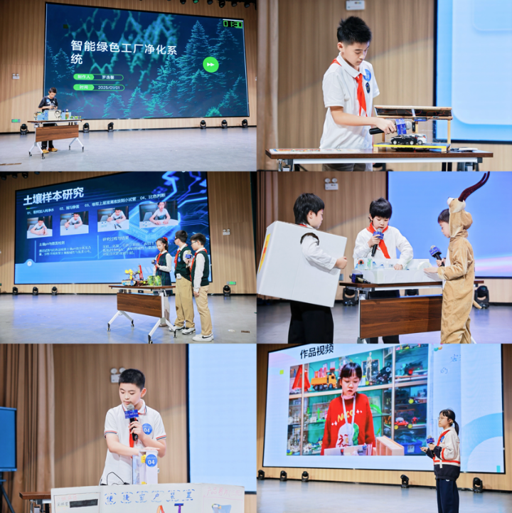 决赛阶段,10组社会组参赛队伍以“自我介绍+项目展示+现场答辩”的形式展开比拼,通过PPT讲演、情景剧互动及实物展示等多元方式,全面呈现项目的创新思路与实施细节。参赛项目兼具科技深度与生活温度,也充分诠释了“创新源于生活、服务社会”的理念,选手们的专业表现赢得现场广泛认可。评审环节采用“专家评审+大众投票”双维度机制:专家评委从创新性、实用性、可行性、展示性等方面综合打分;“1分钟演说”返场环节中,现场科技工作者代表组成的大众评委参与投票。最终评选结果出炉:武汉小学(瑞景校区)“新能源专用车位智能控制系统”、武汉爱莎国际学校“带储物结构微型飞行汽车”获社会组金奖;武汉市七一中学“爸爸的新颖电脑桌”等3个项目获银奖;武汉市育才第二小学“基于记忆合金的人形机器人仿生肌肉系统”等5个项目获铜奖。活动现场还为大赛企业组、大学生组一等奖项目及优秀组织单位颁发荣誉。