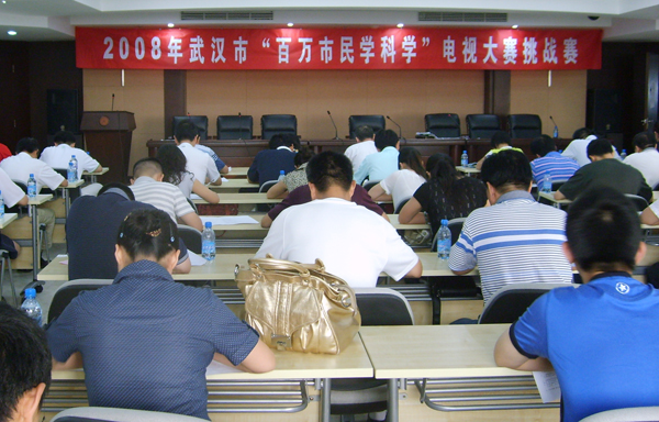 2008年9月16日下午,来自全市13个城区的65名选手参加了2008年武汉市“百万市民学科学——谁是节能王”电视大赛挑战赛。本次挑战赛以笔试形式进行,试题内容涉及汽车、建筑、家电、太阳能、废物利用等方面的节能环保知识。通过紧张的笔试答题环节,江汉区、硚口区、汉阳区、武昌区、黄陂区、蔡甸区、汉南区和江夏区等8个区的40名选手进入了9月下旬初赛。