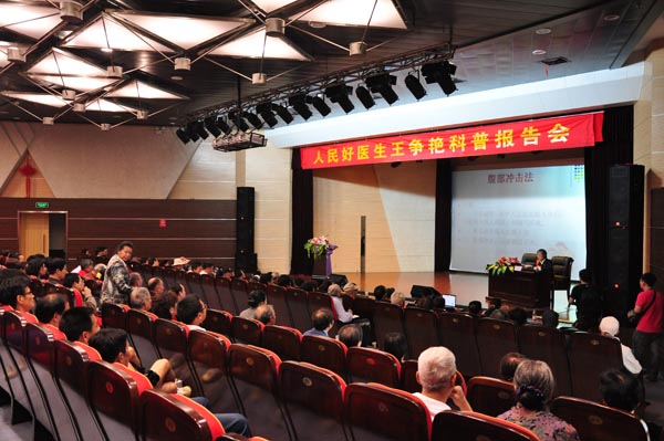 5月1日上午,“上医”王争艳携手汉口医院“王争艳工作室”专家和医护工作者共30余人,在武汉科技馆与市民面对面,开展了一场精彩的科普互动活动。活动当天,王争艳为现场300余名听众作了一场关于家庭急救科普知识,会场不时响起阵阵热烈的掌声。报告会后,专家们还为100余名市民现场义诊。