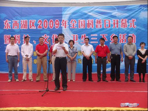 9月18日,东西湖区2009年全国科普日活动开幕式暨科技文化卫生三下乡活动在新沟镇街广场隆重举行。区委常委、区委宣传部长、区全国科普日活动组委会主任徐保忻、区人大常委会副主任马翠珍以及东西湖区全国科普日活动组委会各位副主任、新沟镇街办事处党政领导出席了开幕式。约500多名干部群众参加了本次活动。