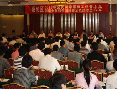 5月11日,武汉市蔡甸区召开2010年全民科学素质工作暨创建全省和全国科普示范区动员大会,区委书记李忠在讲话中强调“用《纲要》精神统领示范区创建工作,以创建成效体现实施《纲要》的成果”,并倡导在全区开展“七创”活动,建立区内科普示范体系。