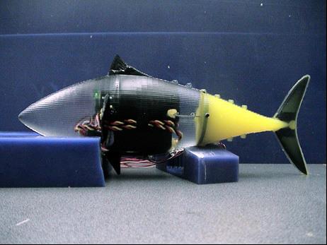 由于身体完全由一整块柔软的聚合体材料制成,避免了水破坏脆弱内部零件的可能性。虽然仿真程度极高,但人们决不会将这款机器人误认为真正的金枪鱼。真正的金枪鱼每秒游动距离最远可达到体长的10倍,而机器金枪鱼的成绩却只有1个身长。