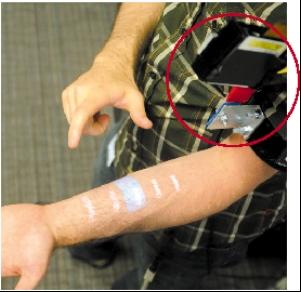 英国媒体3月3日报道,Skinput皮肤输入界面是采用微型投影机,将手机、mp4甚至电脑的操作界面投影到手臂或手掌上,系统事先对应投影位置,使用者可以直接在手臂或手掌上的不同部位敲打,就能把手臂变成一个触摸屏,原理是手指与皮肤碰触时会产生超低频声响,不同部位声波不同,科学家通过软件利用这些不同声波来区分位置,然后,再用无线技术如蓝牙将这些触摸指令转化来操作手机。