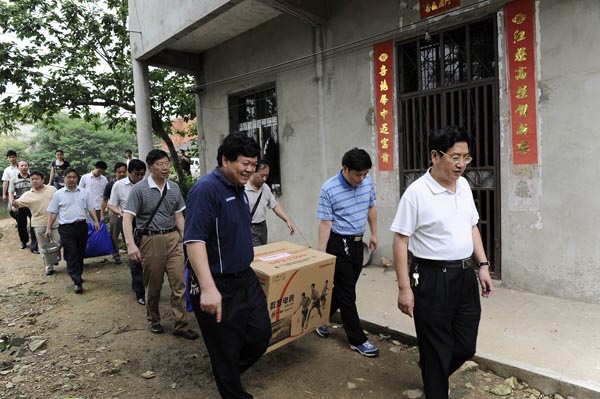 7月1日上午,市科协副主席万立生、副巡视员徐德宗带领机关和直属二级单位支部书记和部份党员干部代表,到市科协对口帮扶联系点——黄陂区蔡榨镇开展向无力自建房特困群众捐赠物品活动。深入到9户对口帮扶户家中,为他们每家送去了“一套桌椅、一个衣柜、一张床、一台新彩电、一套床上用品”和大量的四季衣服、生活日用具,对个别特困家庭还送去了食用油、大米等基本生活品,给他们送去了党的关怀和温暖。