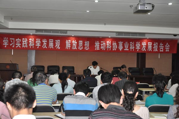 报告会上,卢光发同志主要讲了三个方面的内容:一是深刻认识、全面把握科学发展观的科学内涵和精神实质;二是学习实践科学发展观要求科协工作必须坚持以科技工作者为本;三是继续解放思想,认真找准并着力解决科协工作中不适应、不符合科学发展的突出问题。他强调,科技工作者是推动科学发展的重要力量,科协要把为广大科技工作者提供优质高效服务作为根本任务,支持科技工作者干成事,干好事,干大事,切实当好科技工作者之家。
