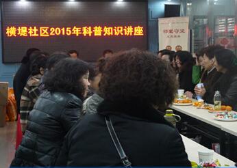 在羊年春节来临之际,为让社区广大居民群众快快乐乐过个健康年、安全年、放心年,江汉区北湖街横堤社区组织开展“科普知识进社区•健康快乐过大年”知识讲座,以饮食健康教育、人身安全教育等为主题开展科普宣教活动,为春节期间居民的健康安全保驾护航,让居民群众过一个安全、快乐、健康的春节。社区科普志愿者组织社区居民举办了健康科普知识讲座,居民们积极参与,大家观看了科普知识宣传片。对常见病、多发病及防灾减灾知识的了解,提高防范意识,增强应急自救能力,中老年常见病、防震减灾科普知识。科普教师对地震的起因与危害、防震准备、应急避险常识、震后自救与救助等知识作了认真讲解;还从多种角度对食品卫生与营养、防病治病等自我保健知识做了全方位的介绍。参加听课的社区居民纷纷表示:举办这样的讲座仅对防震减灾等方面的科普知识有了更深的了解,而且还学到了许多自我保健和预防疾病的知识。