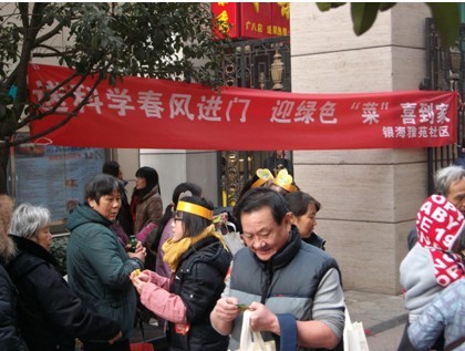 市科协网讯 12月30日上午,银海雅苑社区联合共建单位五洲物业服务处、巨人教育集团,开展了“送科学春风进门,迎绿色“菜”喜到家”——向居民免费赠送冬储包菜的主题科普宣传活动,对高龄和独居老人还组织党员志愿者进行了送菜上门的服务。此次活动得到巨人教育集团的大力支持,共计准备了 800 公斤包菜,以每人一颗为基数起发,虽然数量有限但在严冬时节新年来临之际进行这样的活动,传递了社区与各方面社会人士对社会弱势群体的关怀和爱心,体现了社区与企业及社会力量联手创建和谐文明社区的思想与精神。
