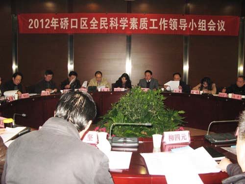 会议传达了上级全民科学素质工作会议精神,总结了我区2011年全民科学素质工作,讨论通过了2012年全民科学素质工作要点,明确了《硚口区全民科学素质工作领导小组工作规则》及《硚口区全民科学素质工作领导小组成员单位职责分工》,区发改委、区教育局在会上交流了工作经验。