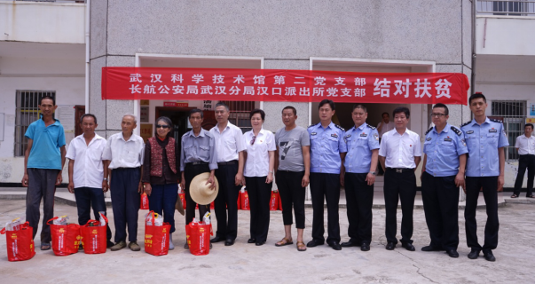 图为武汉科技馆第二党支部和长航公安局武汉分局汉口派出所党支部在管寨村开展结对扶贫的全体党员。