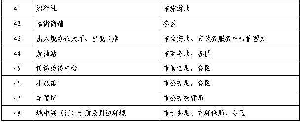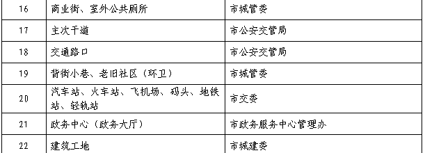 根据全市工作部署,我区将对党政机关、人民团体、企事业单位,街道办事处,社区,餐馆、饭店(中型以上),临街小餐馆、小吃店,宾馆、酒店内设餐厅,临街商铺,加油站,信访接待中心,小旅馆,城中湖(河)水质及周边环境等11类重点公共场所开展测评、排名,并将测评结果按时上报。其中,党政机关、人民团体、企事业单位的测评、排名由各街道组织实施;街道办事处、社区和信访接待中心的测评、排名由区文明办组织实施;餐馆、饭店(中型以上),临街小餐馆、小吃店,宾馆、酒店内设餐厅3类场所的测评、排名由区食药监局组织实施;临街商铺的测评、排名由区城管委组织实施;加油站测评、排名由区商务局组织实施;小旅馆的测评排名由区公安分局组织实施;城中湖(河)水质及周边环境测评、排名由区水务局、区环保局组织实施。组织实施部门每周一将前一周测评结果报区文明办。请各街道、各单位加大对重点公共场所的排查,对照实地考察测评标准,做好自查和整改,确保创建达标。
