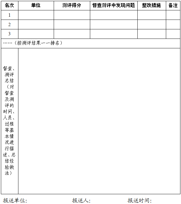 7月5日起至8月份,各区、各单位自行开始组织实施。请各区及各行业、系统、战线单位于7月4日前将测评工作联系人及联系方式报市文明办(测评工作联络信息表见附2)。在测评迎检期间,各测评组织实施部门要坚持天天督查、周周报送、月月排名(每月每类测评对象至少有一次测评排名结果,其中测评对象中排名数量多的仅排前20名、后20名),周三或周五将督查情况及测评结果报市文明办(督查情况及测评结果报送表样式见附3)。