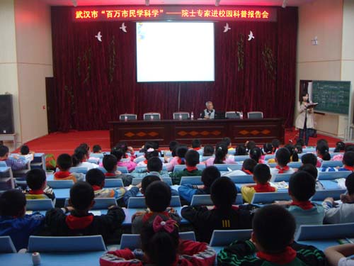 市科协网讯 4月26日、27日连续两天,来自中科院武汉“院士专家进校园”报告团的刘仁俊、徐世球、蒋危平三位专家到江夏实验小学、东湖路学校、一初、实验高中四所学校,举办了《企鹅知识趣谈》、《人与地球》、《鱼类知识趣谈》、《核电安全》4场科普讲座,让1000余名师生学到了丰富的科学知识,享受到了精彩的科普盛宴,掀起了我区青少年科普活动高潮。