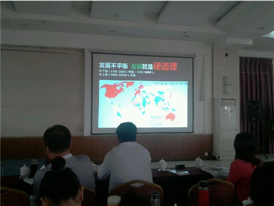 上图为环保部宣教中心主任贾峰正在作《世界因你而改变》主题报告