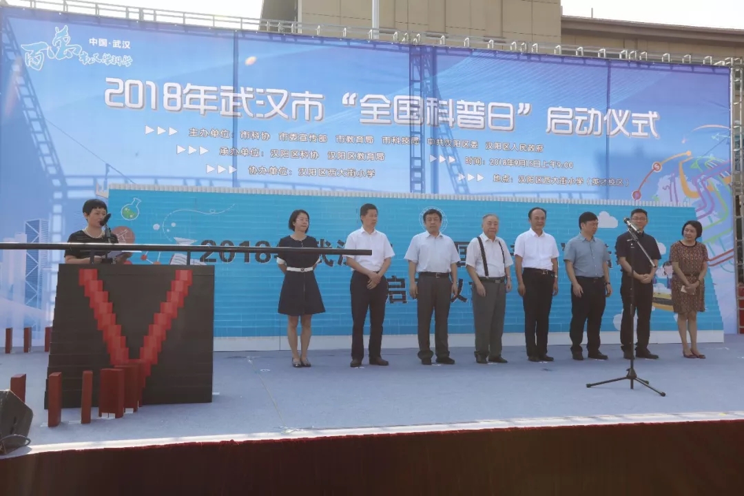 市科协网讯 9月15日,主题为“创新引领时代,智慧点亮生活”的2018年武汉市“全国科普日”启动仪式在汉阳区西大街小学(英才校区)拉开帷幕。党组成员、副主席郑华主持活动,市委副秘书长徐精华宣布武汉市“全国科普日”启动。中国科学院院士曹文宣,市科协党组书记、副主席陈光勇,汉阳区委书记马泽江,市教科院院长李碧武,汉阳区委副书记、区政法委书记范礼奎,汉阳区政府副区长皮惠兰,汉阳区政协副主席甘琼等出席了启动仪式。