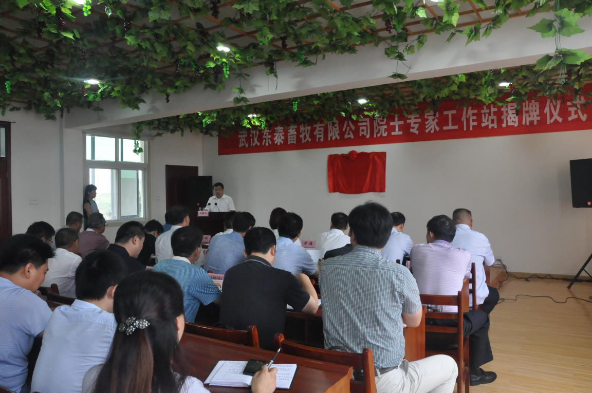 副主席安群慧宣读院士专家工作站成立文件,武汉市人民政府副秘书长方洁向陈焕春院士颁发特聘院士证书。武汉东泰畜牧有限公司董事长温能生汇报了院士专家工作站建站情况,公司九年来致力于打造农业科技型龙头企业,建立了基础研究、应用研究和产业化紧密结合的体系,实行产学研相结合模式发展,组建了一支以院士为首,博士硕士为主要研发骨干的专家型技术队伍,建立了种猪繁育、种子资源克隆等农业示范基地。