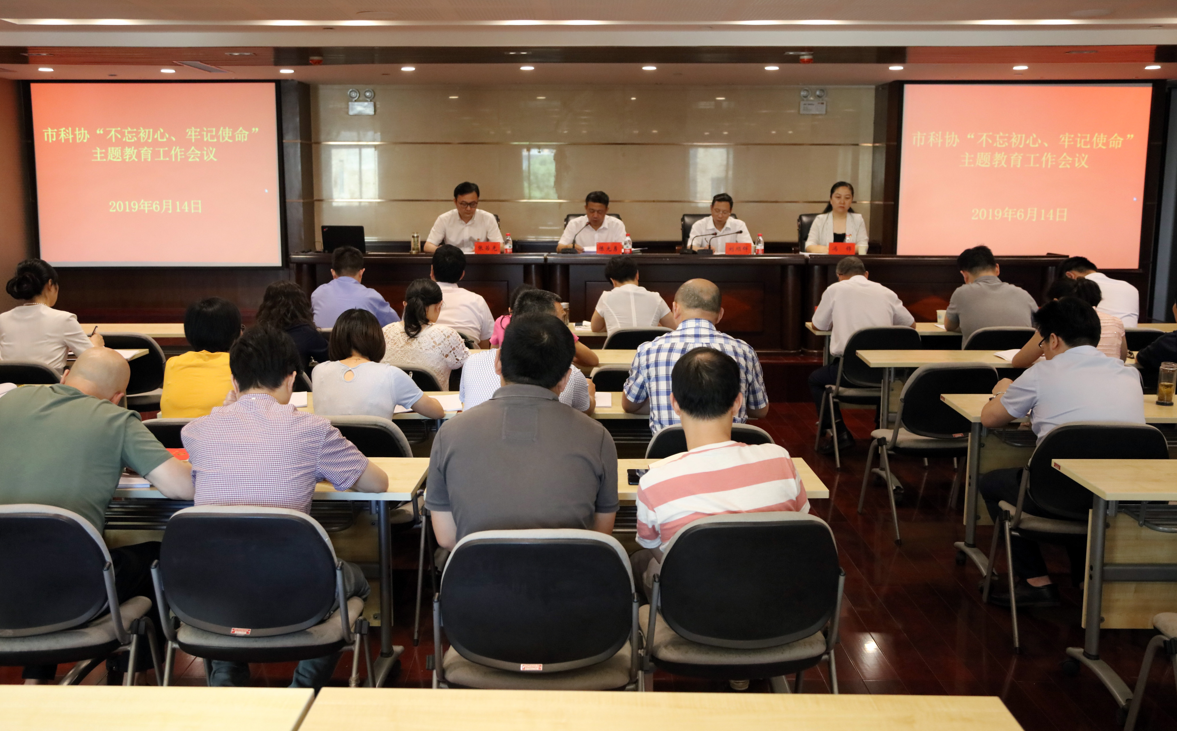 6月14日下午,市科协召开“不忘初心、牢记使命”主题教育工作会议,对市科协“不忘初心、牢记使命”主题教育作出动员部署,要求市科协各级党组织和党员干部提高政治站位,扛起政治责任,以高度的政治责任感,认真负责地把主题教育组织好、开展好,确保取得实实在在的成效。市科协党组书记、副主席陈光勇作动员讲话,市委第十巡回指导组组长刘顺辉出席并作重要讲话。