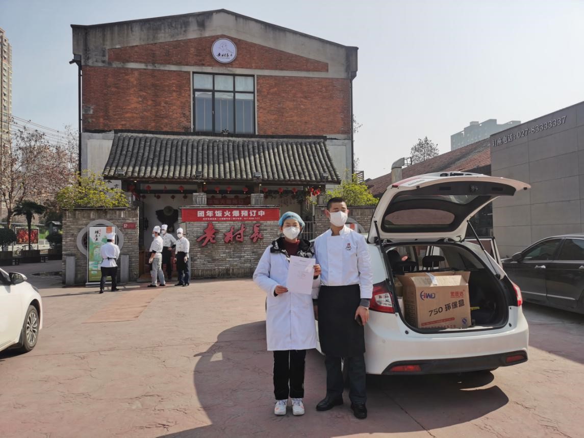 1月30日下午,在给民权街社区卫生服务中心送完防护物资后,了解到该社区卫生服务中心医护人员吃饭问题难以保障,区科协想方设法,于31日联系到湖北蔡明纬食品有限公司,对方协调武汉市餐饮协会,并委托老村长酒店每天免费为民权街社区卫生服务中心提供工作用餐(中餐60份,晚餐40份),解决了该社区卫生服务中心吃饭难的问题。