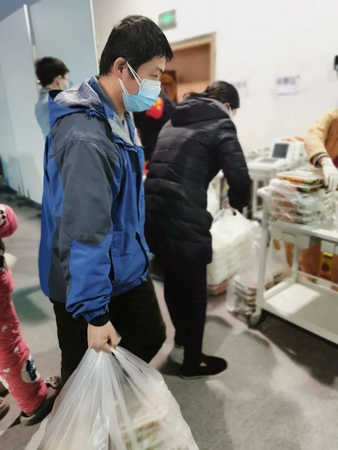 即便如此,治疗期间的他最心心念念的还是志愿者工作,并成为名副其实的“双面人”——当护士来给他打针治疗时,他是躺在病床上,乖乖“听调”的病人;而非治疗阶段,他撑着难受的身体,主动帮工作人员分发物资和饭菜、清理垃圾、鼓励病友。