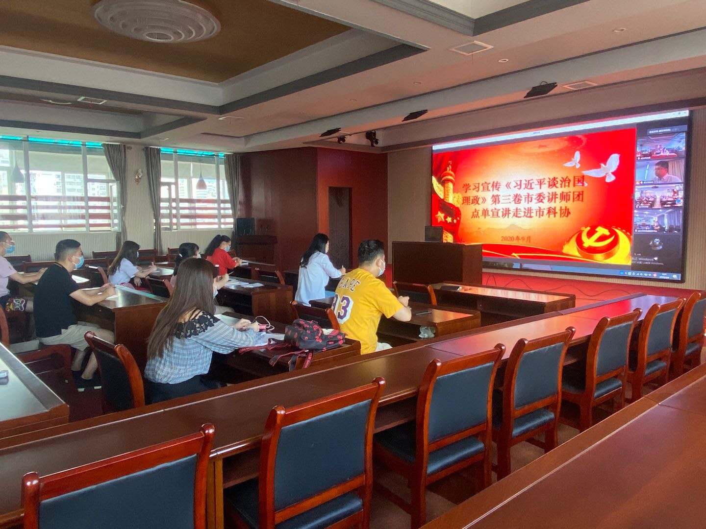 市科协网讯(记者 丁莹 通讯员 陈凯)9月4日,市科协召开党组理论学习中心组(扩大)专题报告会暨《习近平谈治国理政》第三卷学习宣讲活动,邀请市委讲师团成员余振教授做辅导报告。报告会主会场设在市科协401会议室,武汉科技馆、武汉市科技创新服务中心、武汉科技报分别设立分会场。市科协党组书记、副主席陈光勇主持集中学习活动。