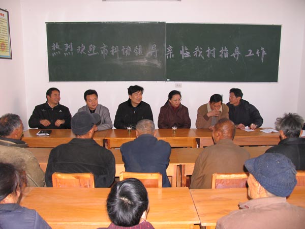 村干部、贫困户、干部们在村委会会议室开会座谈,共商脱贫致富措施。会上,村支书介绍了村里基本情况和社会、经济发展计划。街工委彭书记介绍了街里的发展规划。市科协卢主席针对村里的资源情况,提出了要抓好农业、利用好山林资源、抓好务工经济,增加农民收入,加强农业基础设施如农田水利、道路建设、改善生产生活条件,美化村容村貌的建议。对随去的干部们提出了要认门结对,走访调查,了解其生产、生活情况、分析致贫原因,帮助制定脱贫计划,落实扶贫项目,把帮扶户当作亲戚走的要求。特别强调村干部、村民要鼓励孩子勤奋读书,很好掌握文化科技知识,为改变山区贫困面,改变自己的命运创造条件。并表态,从现在开始,该村学生凡是考上全国二类以上大学的,连续4年,每年给1000元的奖学金。凡是考上市区重点中学的,每年给500元的奖学金,帮助完成学业。要求村干部作好扶贫助教的宣传。话音一落,立即引来与会者的一片称许声。
