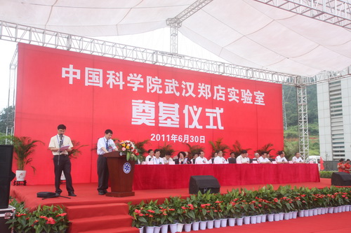 6月30日上午,国家卫生部部长陈竺,中国科学院院长白春礼,湖北省委书记李鸿忠、省长王国生,法国驻华大使白林(Sylvie-Agnès BERMANN)、中法新发传染病防治合作指导委员会法方主席阿兰·梅里埃等中、法代表200余人共聚武汉,出席中国科学院武汉郑店实验室奠基仪式。世界卫生组织总干事陈冯富珍发来贺信。奠基仪式由中国科学院副院长李家洋主持。