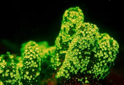 由以色列特拉维夫大学等机构进行的一项新研究认为,珊瑚在海水中发光是为了引诱猎物。在第一阶段实验中,研究人员在实验室中选用甲壳类动物卤虫测试荧光对浮游生物的潜在吸引力。当让卤虫在绿色或橙色荧光靶标和清晰的对照靶标间进行选择时,它们表现出对荧光靶标的明显偏好。在所有实验中,荧光信号对甲壳类动物呈现出极大吸引力。第二阶段实验在深约40米的海域进行,那里是珊瑚的自然栖息地。目标是考察在自然水流和光照条件下荧光对各类浮游生物的吸引力。研究发现,绿色和橙色荧光诱捕器吸引的浮游生物是透明诱捕器的两倍。许多珊瑚呈现出荧光颜色的图案,突出它们的嘴或触手尖端,这说明珊瑚发光就像生物发光一样,是吸引猎物的一种机制。