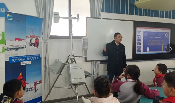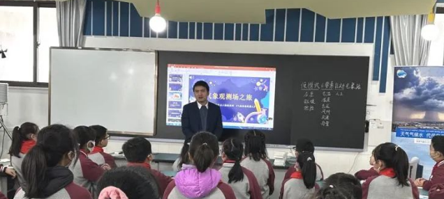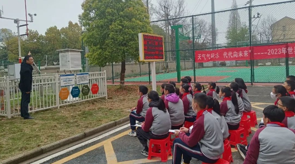 来自湖北省气象信息技术保障中心的邬昀老师将便携式气象站带到了活动现场,为同学们细致讲授气象观测仪器及应用方法。在简单了解后,邬老师带领着气象社团的同学们,来到了永安小学红领巾校园气象站。在互动交流环节,同学们热情高涨,纷纷举手抢答。