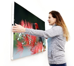 这款“真无线”电视能利用机背上的真空环吸附在玻璃、墙壁等平整表面。电视内置四块大电池,官方称按照每天平均使用 6 小时计算,该电视使用的电池可以提供一个月的续航时间。此外,四块电池都可以独立拆卸下来充电,不影响其他电池的正常使用。