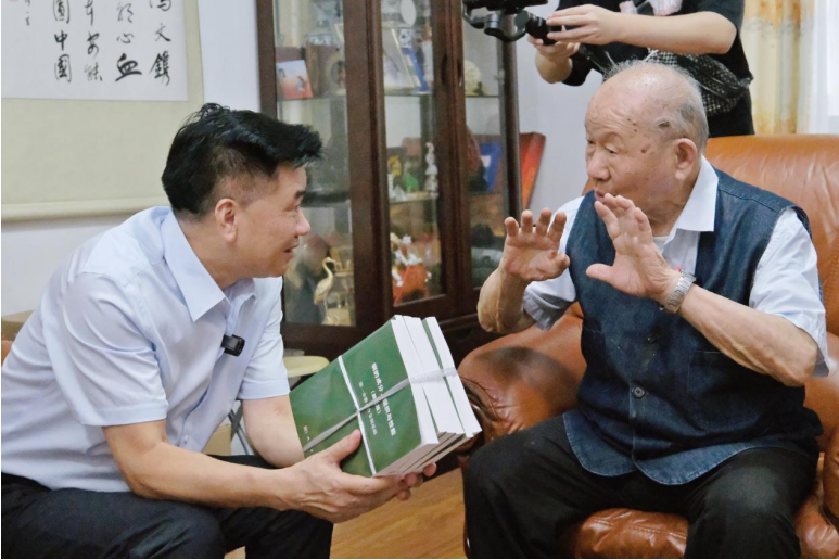 当天,崔院士还赠给《钢的成分、组织与性能(第二版)》系列丛书。2012年8月,87岁的崔院士完成《钢的成分、组织与性能》专著。这本著作耗时近7年,达200万字,成为我国首部全面系统介绍特殊钢的“百科全书”。完成撰写后,他又用了7年时间对全书进行修订,2019年出版了第二版。他说,技术总是在发展,要不断增加新的内容新的技术。