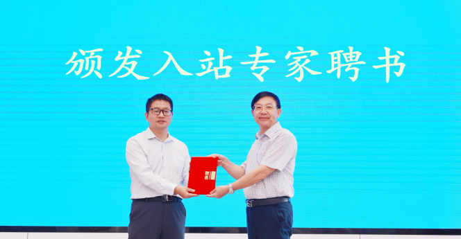 戴意涛致辞并为焦春海颁发入站证书,他指出本次专家科创工作站的成立不仅为企业提供了重要的技术支撑和资金的服务,还给企业带来了发展的机会,区科协要以科创工作站授牌为契机,发挥科协的组织优势,打通服务企业创新的微循环,形成多级联动的体系,促进科技成果的转化。