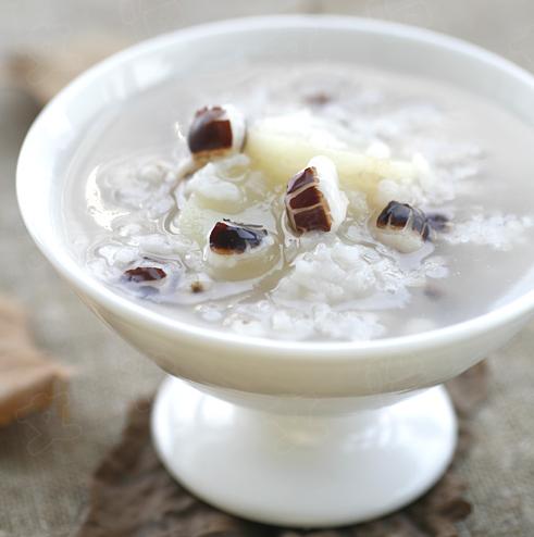 做法:将山药,薏米,莲肉,大枣(干)与小米共煮粥,粥熟后,加白糖少许。