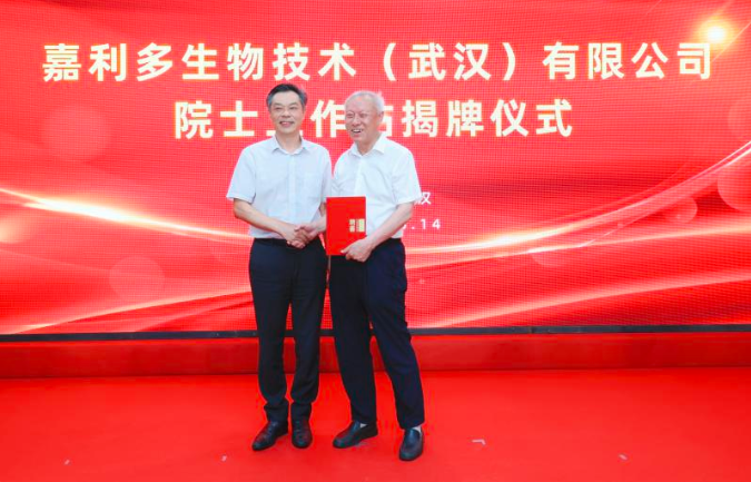 6月14日,嘉利多生物技术(武汉)有限公司(以下简称“嘉利多”)院士工作站揭牌成立,中国工程院院士、中国农业大学教授李德发受聘为入站院士。这是2024年武汉市成立的首家院士工作站。市科协副主席袁艳斌,市农业农村局畜牧兽医处副处长余欢,东湖高新技术开发区科技创新局二级调研员吴世英,武汉国家生物产业基地建设服务中心副主任喻艳飞,武汉高科农业集团有限公司党委委员、副总经理顾淳出席仪式。