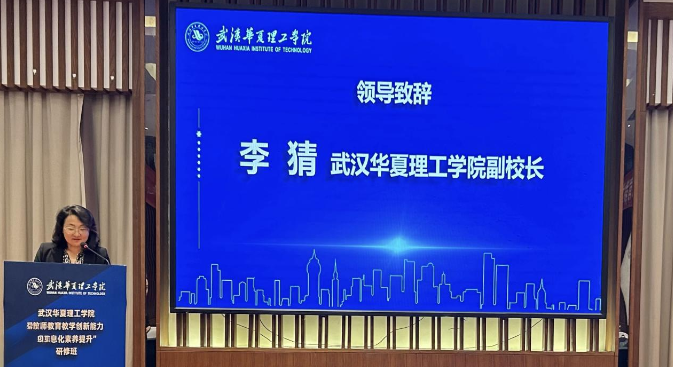 开班仪式上,武汉华夏理工学院副校长李猜致欢迎词,对参加的领导、专家及参训教师表示热烈欢迎。武汉华夏理工学院自2004年成立以来,始终坚持“育人为本,质量至上”的办学宗旨和“质量求生存、管理求规范、特色求优势、创新求发展”的办学理念,秉承“善于学习、刻苦钻研、实践创新、乐于奉献”的华夏精神,不断提升教育质量和教学水平。为进一步提升我校教师教育教学创新能力,增强教师数字化素养与信息化技术应用能力,提高产教协同育人成效,推进学校高质量发展,特举办本次教师研修班活动,希望参会教师珍惜机会,认真学习并能够学以致用,勇于创新,在过程中积极思考,相互探讨。最后祝愿教师学有所成、学有所得、学有所获。