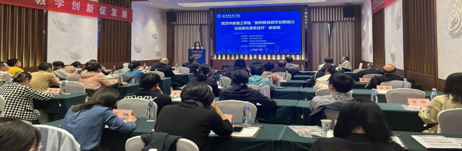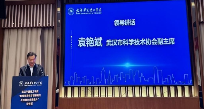 2024年10月26日,为期三天的武汉华夏理工学院“教师教育教学创新能力与信息化素养提升”研修班在湖北天屿湖假日酒店顺利开班。副主席袁艳斌、武汉市科技创新服务中心主任刘斌、武汉华夏理工学院副校长李猜参加开班仪式,此次研修班由武汉华夏理工学院主办,学校科研部部长张城芳主持会议。本次研修班邀请了武汉大学、华中师范大学、中南民族大学、湖北工业大学有着深厚造诣和丰富实践经验的专家为学员们授课,同时武汉华夏理工学院领导干部、教师代表及产学研合作的企业代表热情参与。