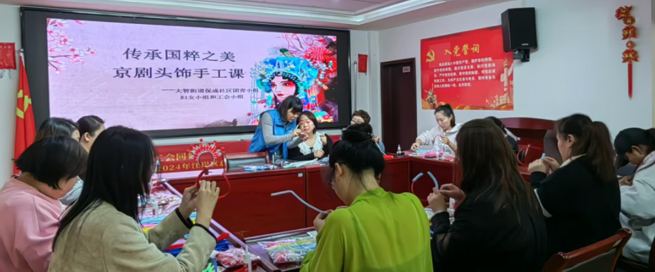 10月30日上午,保成社区三楼活动室热闹非凡,社区团青小组、妇女小组和工会小组的成员们齐聚一堂,参与了一场别开生面的公益手工课活动——制作京剧头饰。此次活动旨在传承和弘扬中华优秀传统文化,让社区各小组成员们在亲身感受京剧艺术独特魅力的同时,增进交流与沟通。