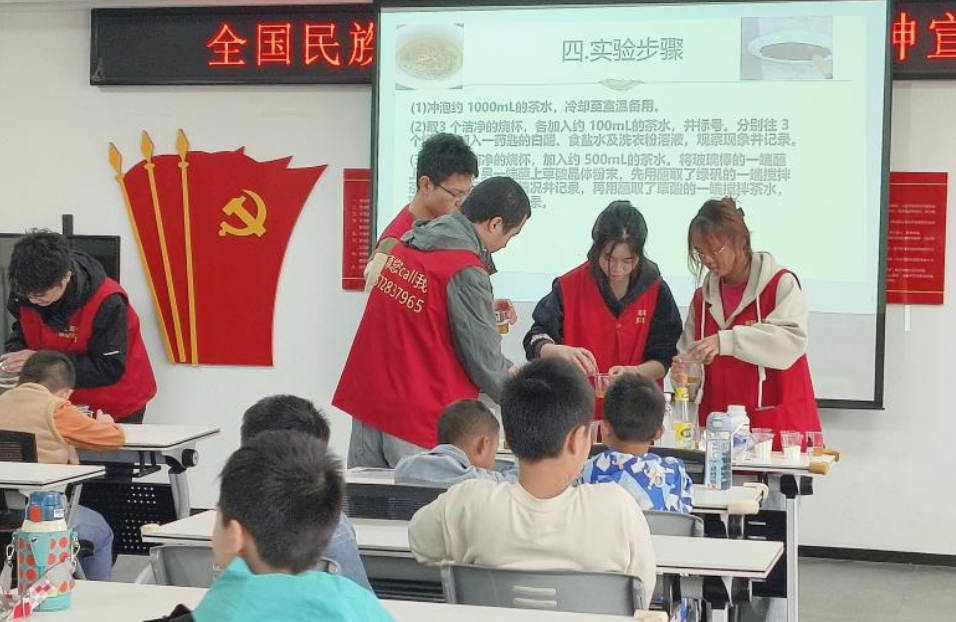 2024年10月27日,湖北大学知行学院生物与化学工程学院应用化学2301团支部为江岸区后湖街道海赋社区开展了一场别开生面的化学科普活动——“茶水中的奥秘”。