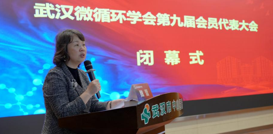 武汉微循环学会理事长魏蕾发表闭幕式讲话。她表示,大会圆满完成预定议程,取得了良好效果,感谢全体会员的支持。新一届理事会将坚持学会宗旨,团结医学科技工作者,弘扬医学道德,提升社会正气,促进医学科技交流和服务人民健康。她强调,要继续贯彻党的二十届三中全会精神,以卫生工作改革和发展为大局,开创学会新局面。