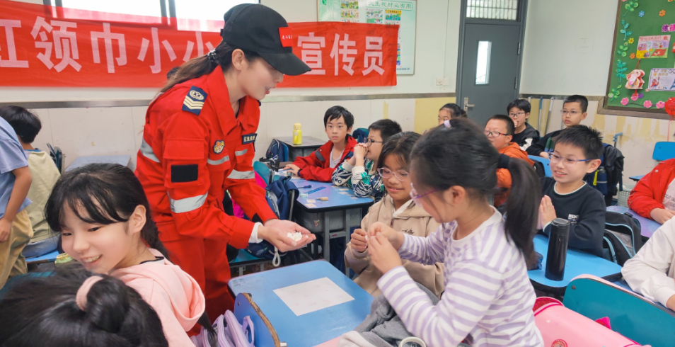 11月15日,江岸区应急管理局组织的“红领巾小小宣传员”活动走进江岸区博雅小学。本次活动邀请2022年度武汉市最美应急人——江岸区宝捷应急救援队副队长邓月婵为同学们讲解防范火灾安全知识。