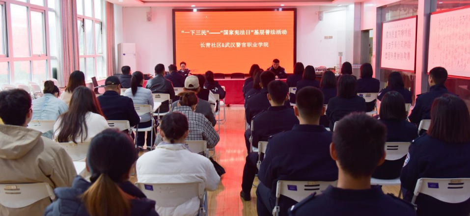 习近平总书记在不同场合反复强调,推进基层治理需要“各类组织积极协同”,同时需要努力“拓宽基层各类群体有序参与基层治理渠道”。2024年12月4日下午,正值我国第十一个“国家宪法日”,武汉警官职业学院司法管理系党总支、政治部党支部、招生就业处党支部、信息工程系学生党支部及长青社区居民代表50余人,在吴家山街长青社区开展“一下三民”暨“国家宪法日”基层普法活动。