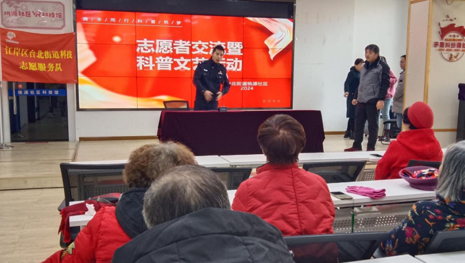 为了提升居民的科学素养、激发科学兴趣、传播科学精神、促进科学与文化的融合,2024年12月11日在台北街道桃源社区新时代文明实践站开展了“志愿者交流暨科普文艺活动”。