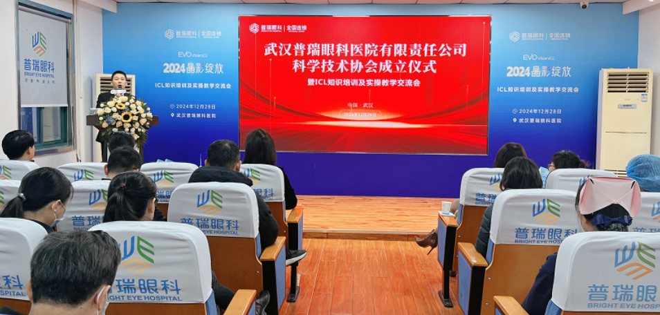 12月28日,武汉普瑞眼科医院有限责任公司科学技术协会成立暨ICL知识培训及实操学术交流会在医院二楼多功能会议室圆满召开。硚口区科协党组书记、主席袁宏玲,六角亭街道副主任胡莎莅临会议。武汉普瑞眼科医院业务院长程旭康、执行院长黄治敏、业务副院长许泽骏、业务副院长林珊、业务副院长观念、医院科协会员及省内眼科医生共计50余人参加本次活动。
