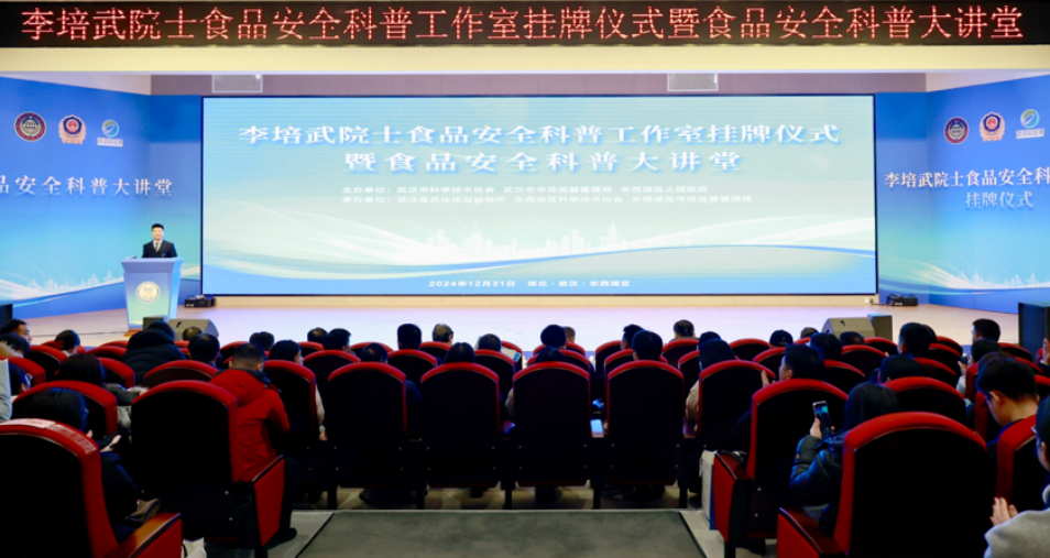 民以食为天,食以安为先。2024年12月31日,李培武院士食品安全科普工作室挂牌仪式暨食品安全科普大讲堂在武汉食品化妆品检验所举行。东西湖区委副书记、东西湖区人民政府区长周明,党组成员、副主席张若光,武汉市市场监督管理局党组成员、副局长李涛出席活动。中国工程院院士、中国农业科学院油料作物研究所研究员李培武,科信食品与营养信息交流中心主任钟凯作科普讲座。
