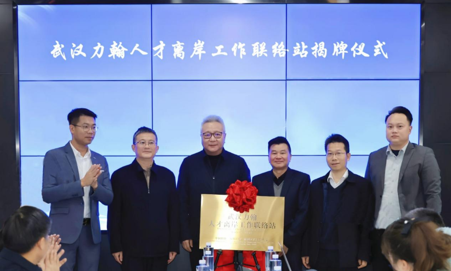 现场,党组书记、副主席李定君,市台办主任刘红鸣,东西湖区政协主席刘华强,市人才局副局长徐超以及武汉力翰科普发展有限公司董事长吴志荣、总经理王祥宇共同为武汉力翰人才离岸工作联络站揭牌。