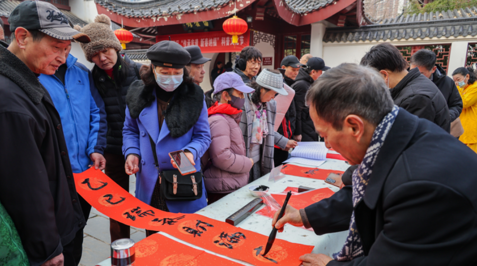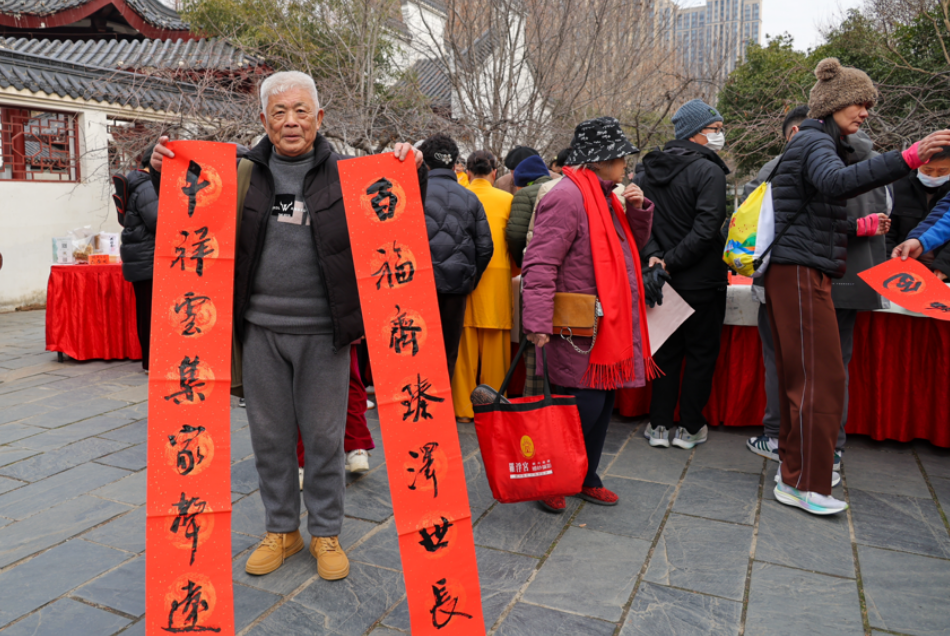 活动现场设置了多个互动体验区。“阖家欢乐迎新春,内外平安好运来。”武汉知名书法家尽情挥毫,将新春的祝福与和谐美好的寓意融入春联当中。围观的群众也纷纷拿起毛笔,在书法爱好者的指导下,一笔一画地体验写春联的乐趣和书法艺术的玄妙。