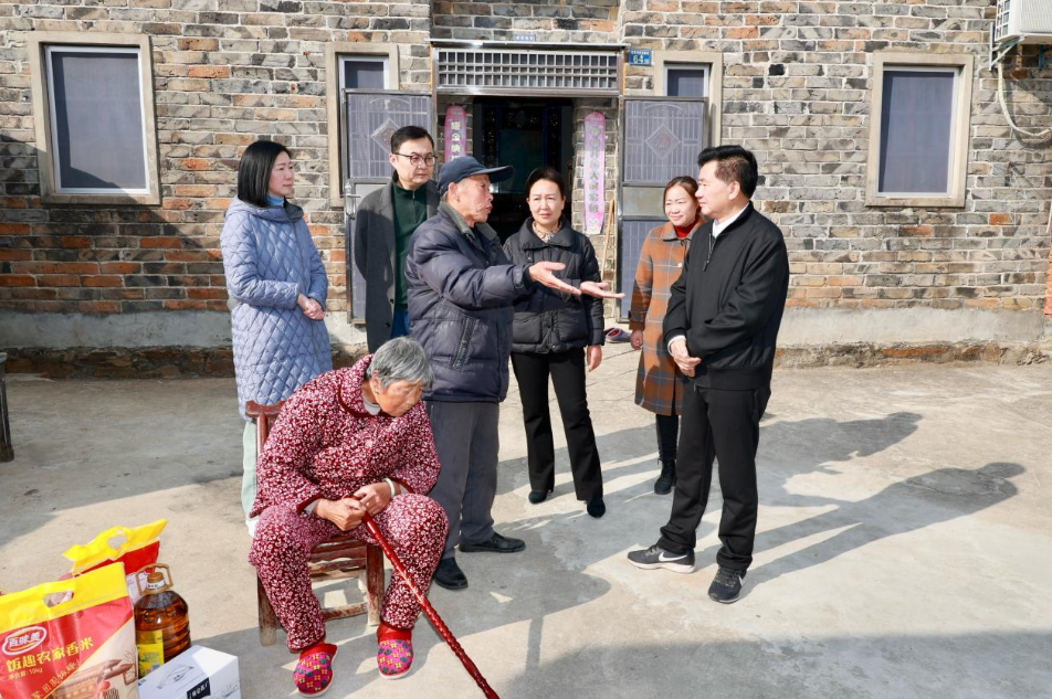 市科协网讯 为进一步关心关爱农村困难群众,1月21日,党组书记、副主席李定君,党组成员、副主席雷萍、张若光一行赴乡村振兴帮扶点新洲区潘塘街管寨村,走访慰问困难群众,并就乡村振兴工作开展调研。新洲区科协党组书记、主席蔡金莲,新洲区潘塘街道办事处党工委书记陈国峰陪同调研。